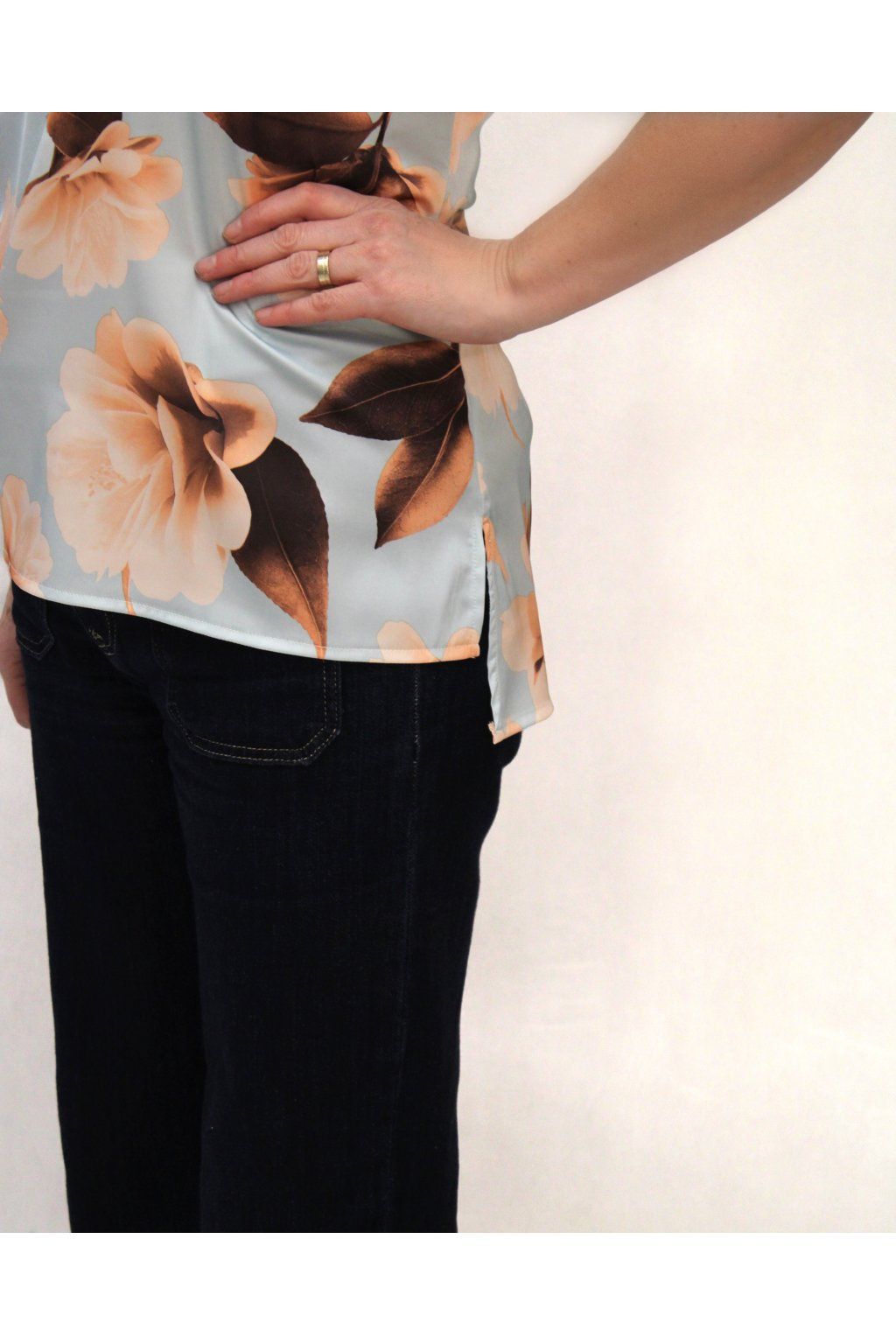 • Praktický detail: Vkusné boční rozparky, které zajistí, že halenka perfektně sedí přes boky a nikde se netne.