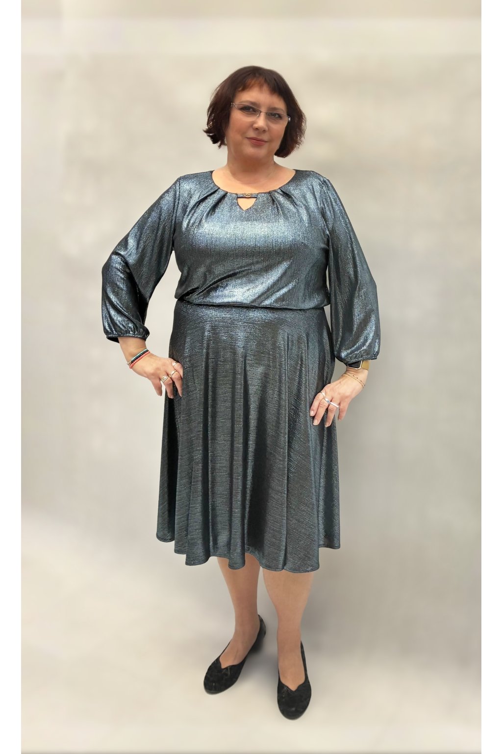 Tyto sofistikované šaty v teplém měděném odstínu jsou ideální volbou pro ženy, které hledají eleganci spojenou s maximálním pohodlím. Metalický odlesk látky dodává modelu luxusní ráz, který vás rozzáří na každé společenské události.