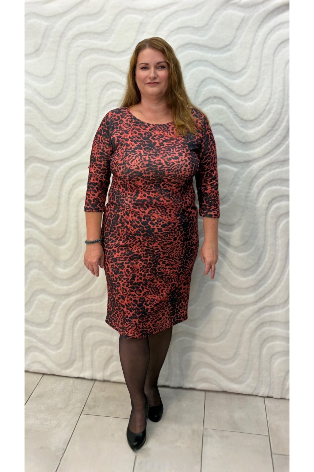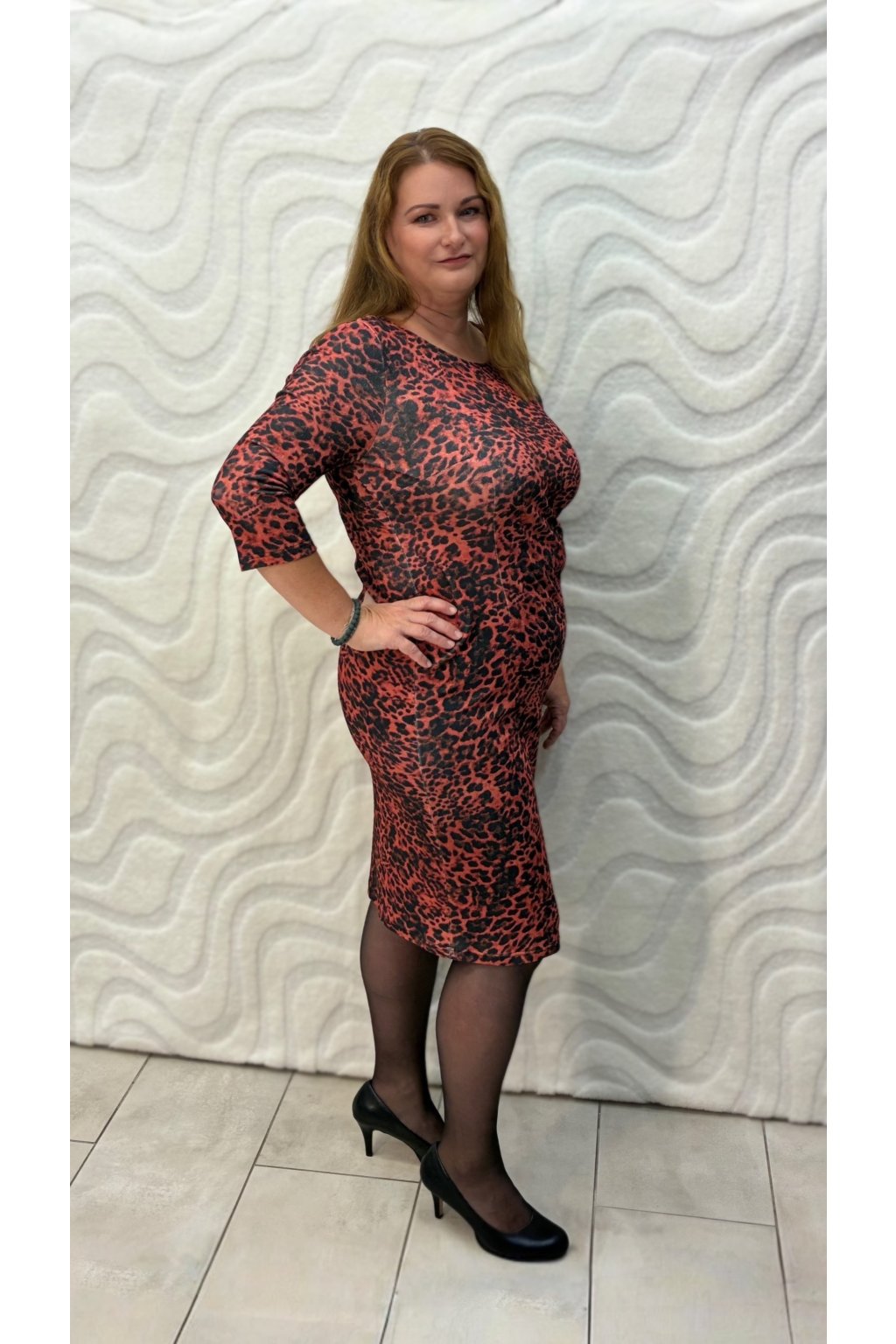 Šaty Agáta se zvířecím vzorem spojují eleganci a odvážný styl. Pouzdrový střih s 3/4 rukávem lichotí postavě a dělá z nich univerzální kousek, ve kterém zazáříte na rande, párty i v práci.