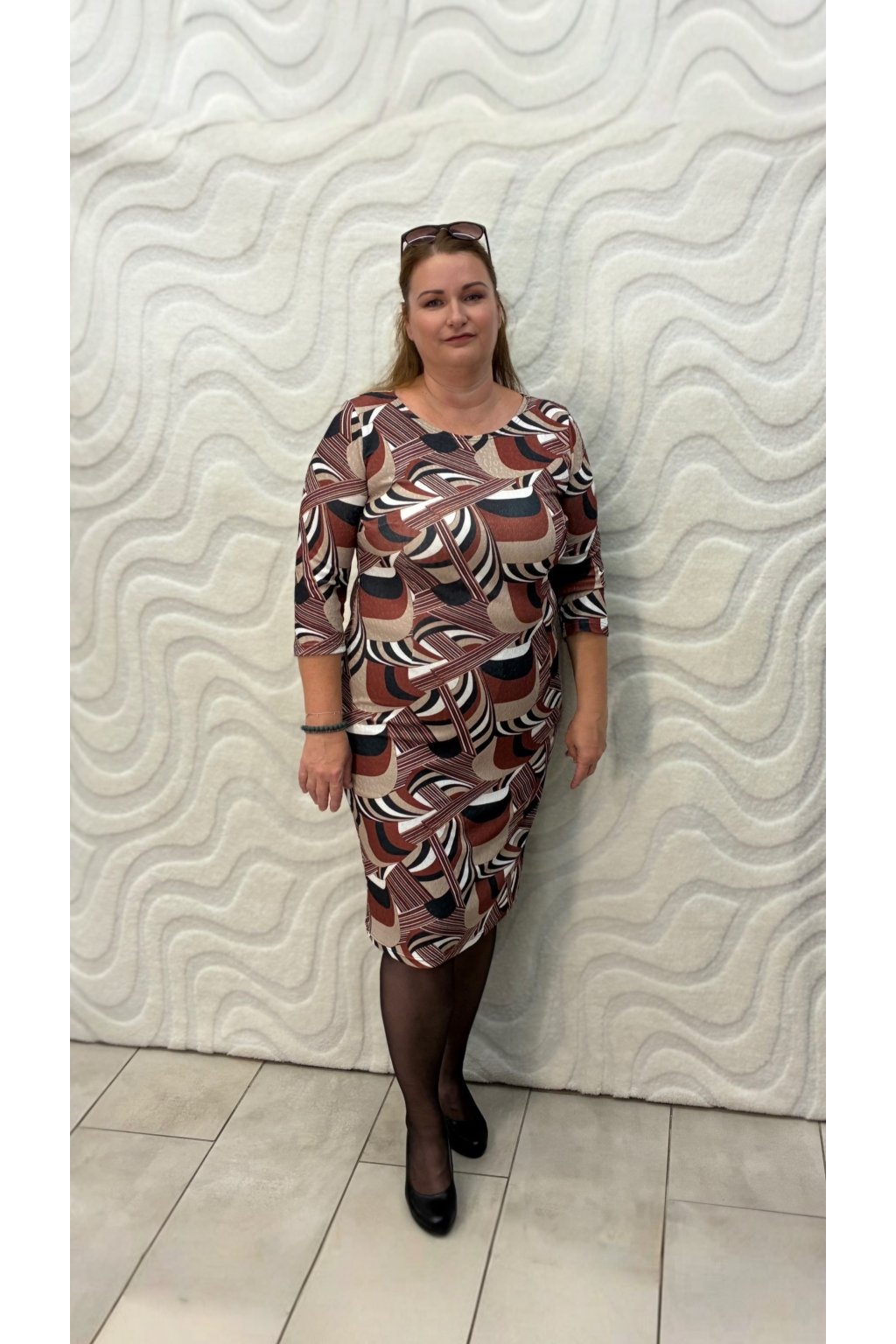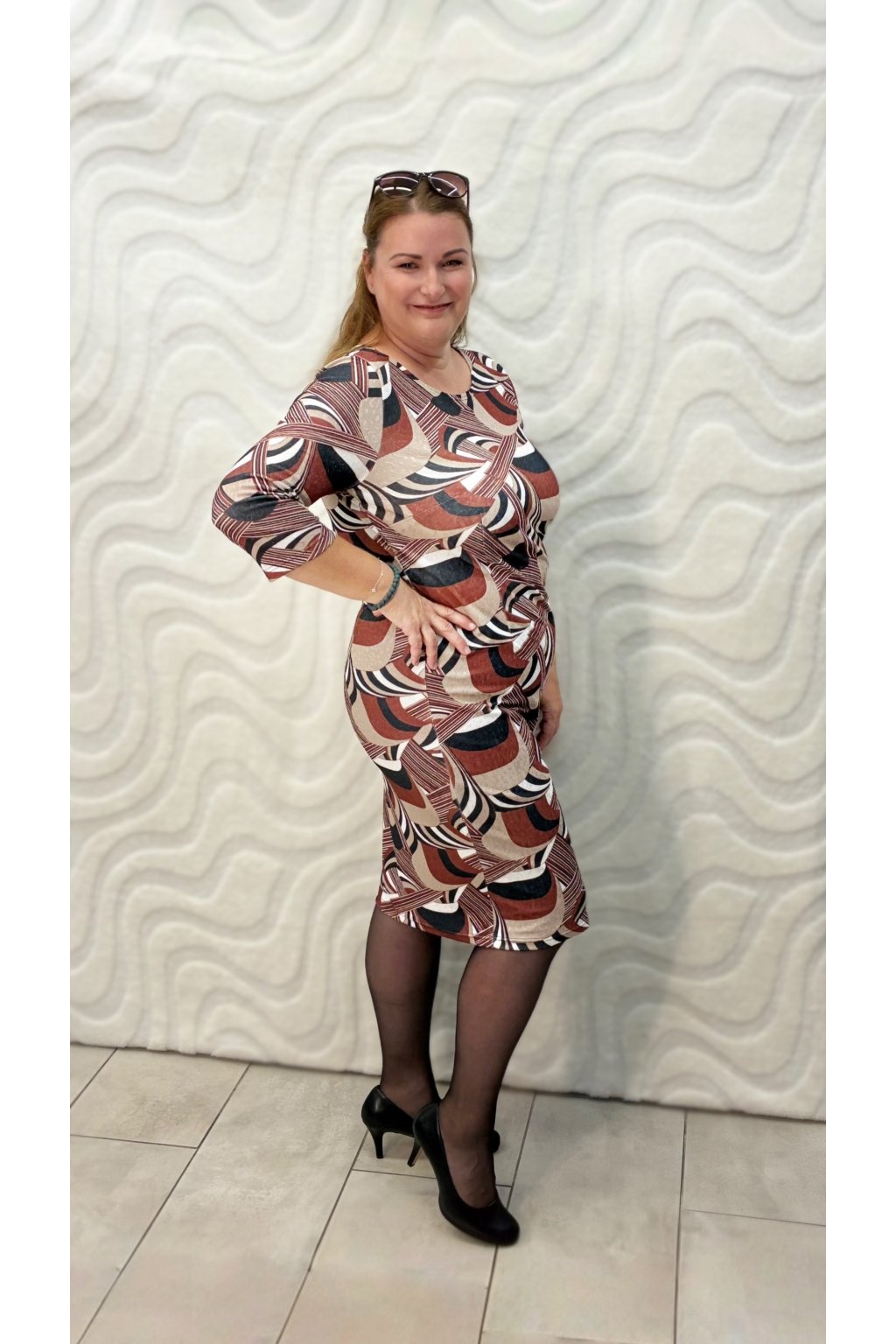 Šaty Carmen s elegantním vzorem vás nechají zazářit – ať už v práci, na párty, nebo při návštěvě divadla. Elegantní pouzdrový střih s 3/4 rukávem lichotí postavě a přirozeně zakryje drobné nedostatky.