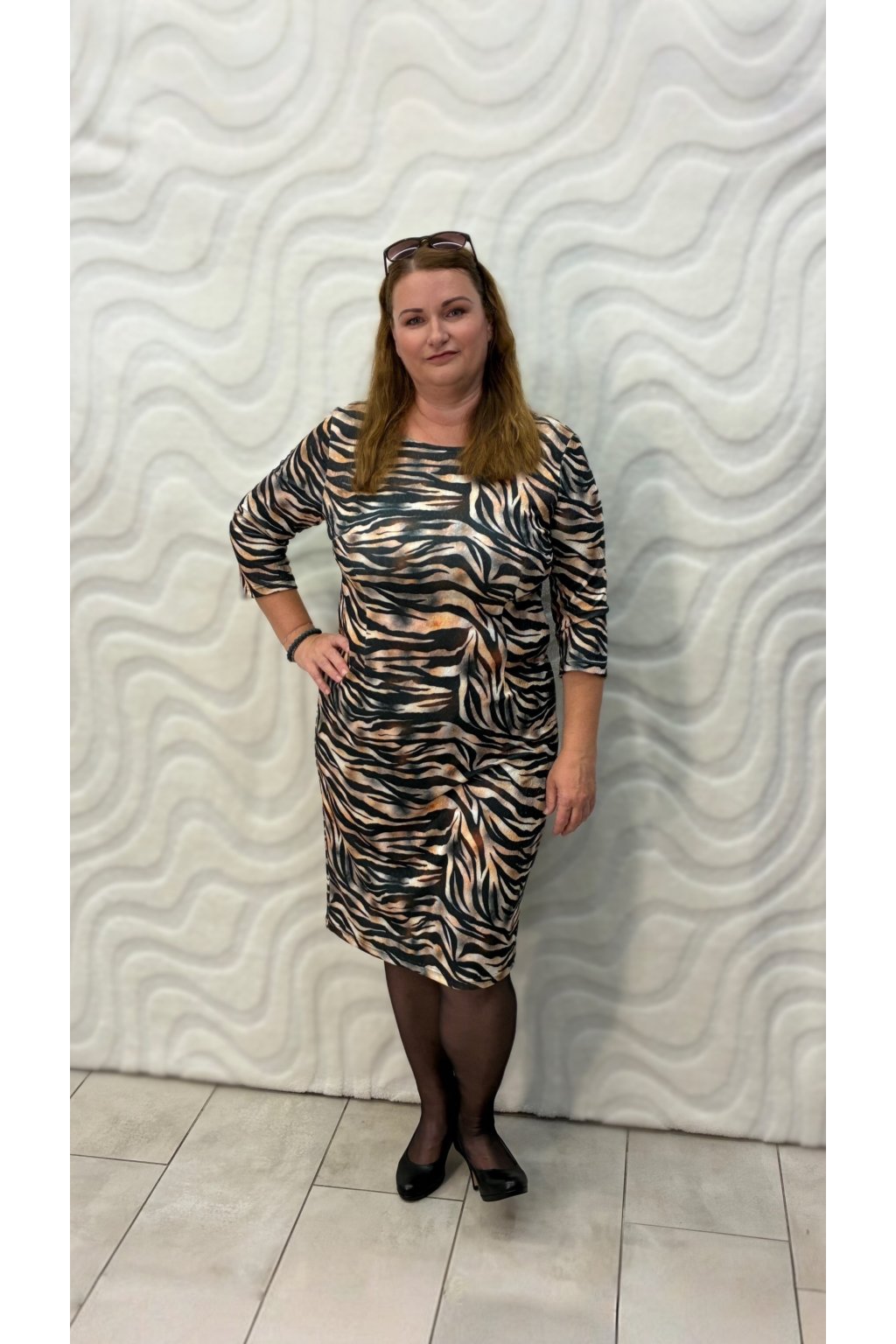 Šaty Diana v odvážném tygřím vzoru jsou nepřehlédnutelné a patří k hitům letošního podzimu. Elegantní pouzdrový střih s prsními záševky a 3/4 rukávem lichotí postavě a přirozeně zakryje drobné nedostatky.