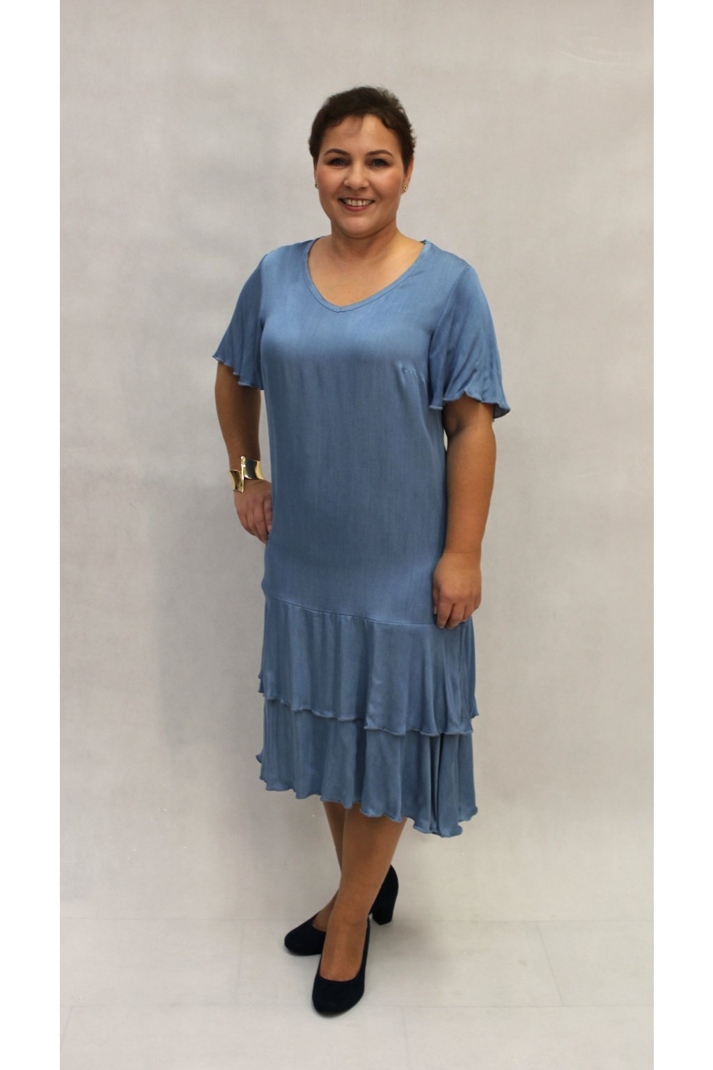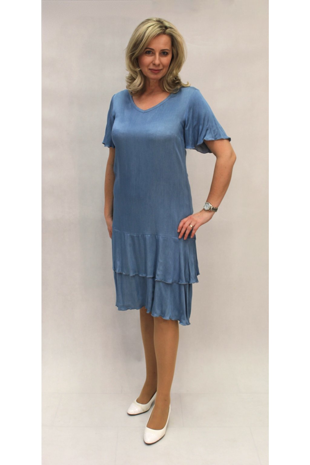 Objevte kouzlo jemné rifloviny v kombinaci s ženskými volány a elegantním výstřihem do V, který vytváří dokonalou siluetu. Tyto modré šaty jsou navrženy tak, aby propojily moderní design s romantickým detailem a dodaly vám sebevědomí v jakékoli situaci. Jsou důkazem, že se v pohodlí můžete cítit naprosto neodolatelně.