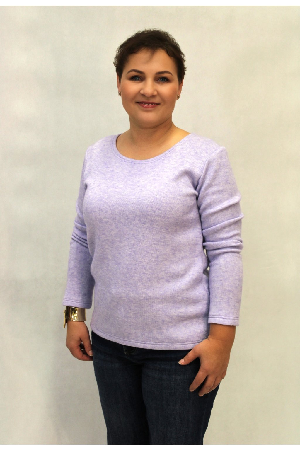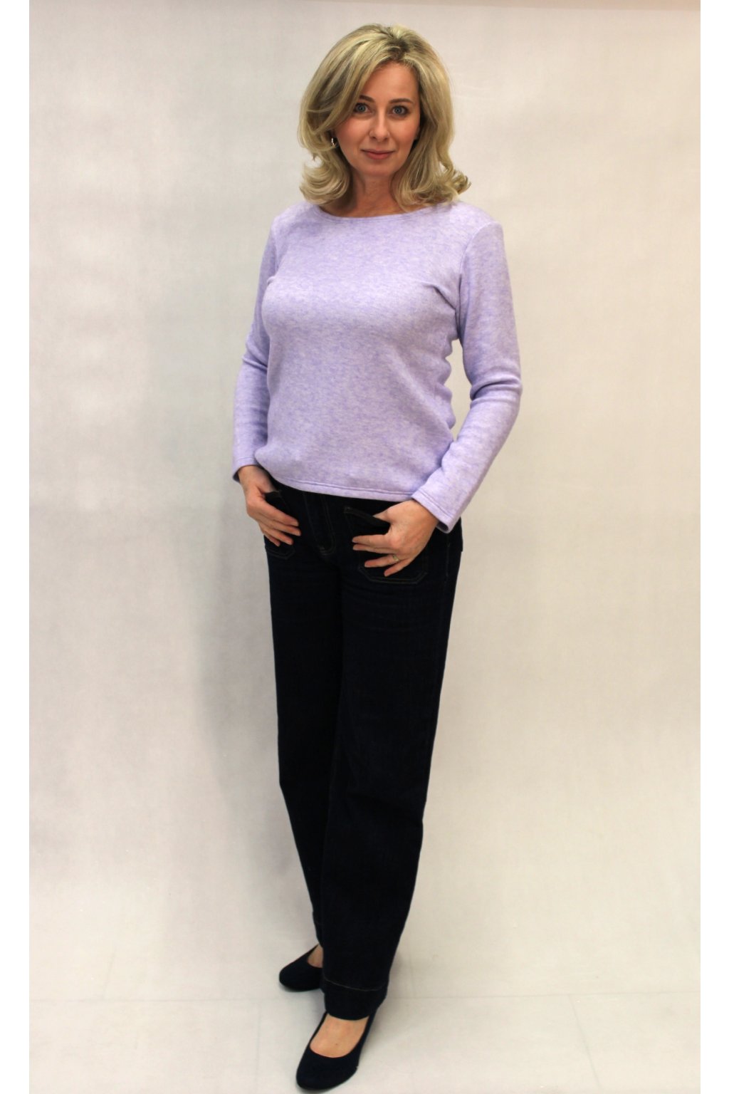 Světle fialová mohérová halenka – hřejivá elegance