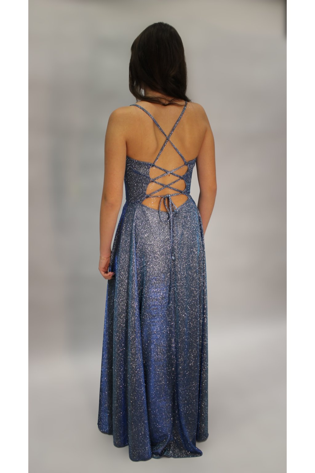 Tyto okouzlující dlouhé šaty ve světle modrém odstínu jsou stvořeny pro ženy, které chtějí na společenských událostech doslova zářit. Design kombinuje nadčasovou eleganci s moderním efektem jemných třpytek, které při každém pohybu vytvářejí magické odlesky připomínající hvězdnou oblohu.